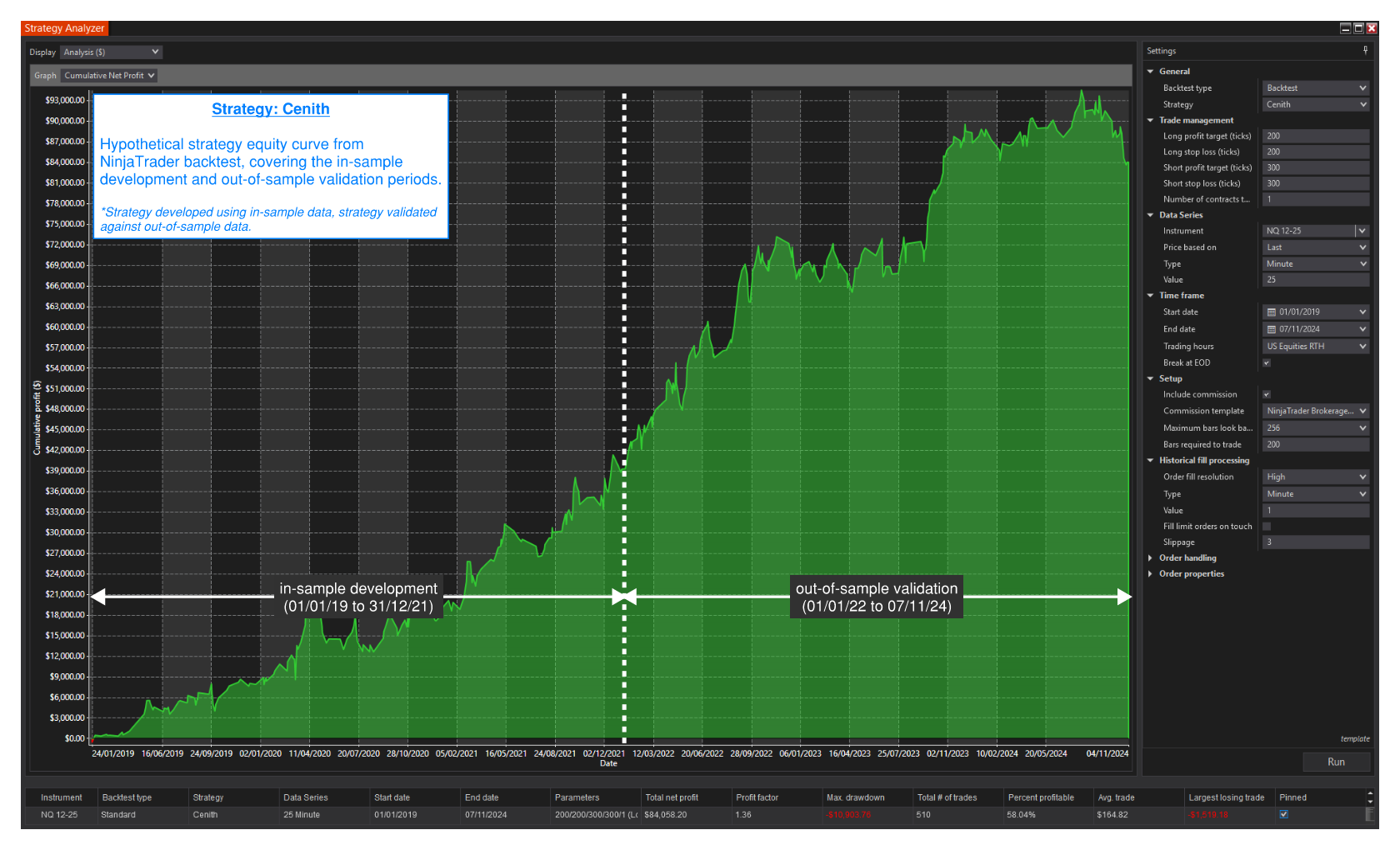 We provide full transparency on the performance of our strategies. Click this google sheets link to access trade data exported from NinjaTrader and see for yourself.