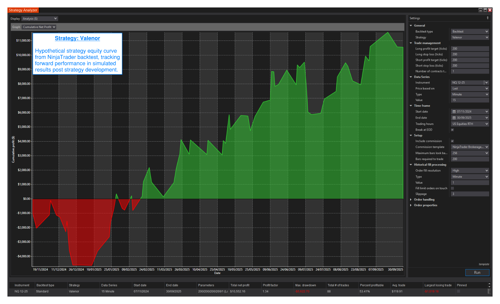 Valenor is an adaptive mean-reversion and momentum system designed for NQ / MNQ on the 25-minute chart. It identifies exhaustion and recovery points within the Nasdaq’s intraday flow, combining Bollinger Band reversals with VWAP structure and trend confirmation to capture transitions from pullback to continuation. The result is a system that reacts intelligently to volatility compression and directional strength without relying on constant optimization.